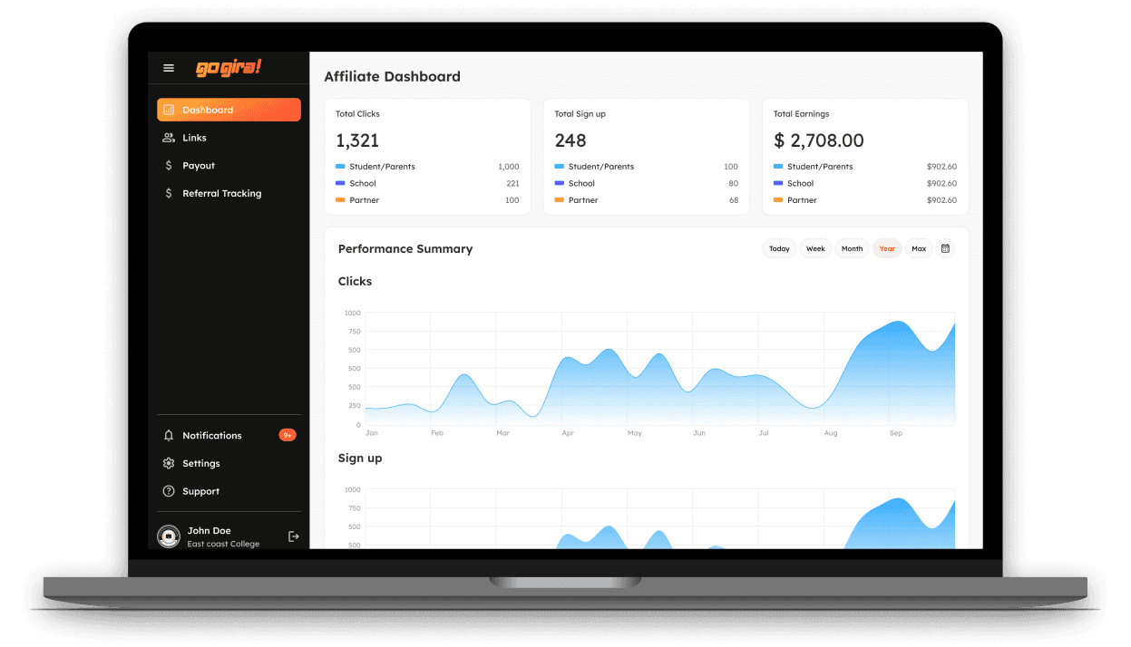GoGira! is a revolutionary platform that uses dynamic multimedia experiences to match students with college, career, trade, and service opportunities. As a GoGira! affiliate, you empower students' voice and choice over their futures while earning commissions for every successful referral.