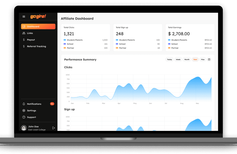 GoGira! offers one of the most rewarding affiliate and fundraising programs in the education and career services space.